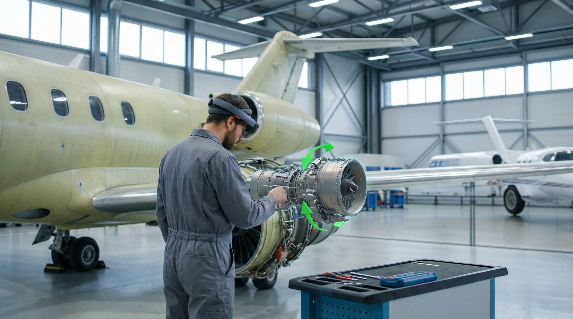 MiraVerse permette di collegare un manutentore esperto, che può trovarsi ovunque nel mondo, con un manutentore meno esperto che deve eseguire un intervento su un velivolo.